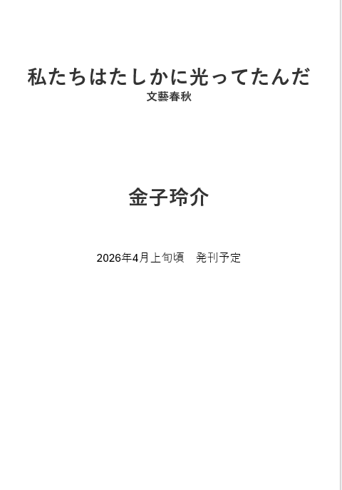 2026年4月上旬 発売予定 金子玲介先生『私たちはたしかに光ってたんだ』(文藝春秋) (価格未定)をご予約ご購入された方にお宛名入りサイン本を販売いたします