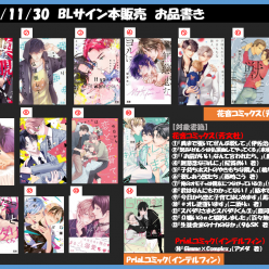 11月30日(日)12:30~当店4FにてBLサイン本を販売いたします。事前に購入順を抽選で決めさせていただきますのでご希望の方は下記の受付フォームにてお申込みください。