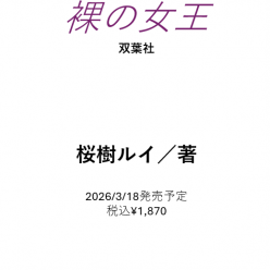2026年3月18日(水) 発売予定 桜樹ルイさん『裸の女王』(双葉社)(税込1,870円)をご予約ご購入された方にお宛名入りサイン本を販売いたします