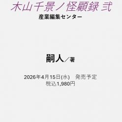 2026年4月15日(水) 発売予定 嗣人先生 新刊『木山千景ノ怪顧録 弐』・既刊『木山千景ノ怪顧録』 (産業編集センター)(各々税込1,980円)をご予約ご購入された方にお宛名入りサイン本を販売いたします