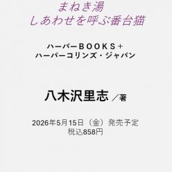 2026年5月15日(金)発売予定の八木沢 里志先生『まねき湯 しあわせを呼ぶ番台猫』(ハーパーコリンズ・ジャパン/文庫)(税込858円)をご予約ご購入された方にお宛名入りサイン本を販売いたします